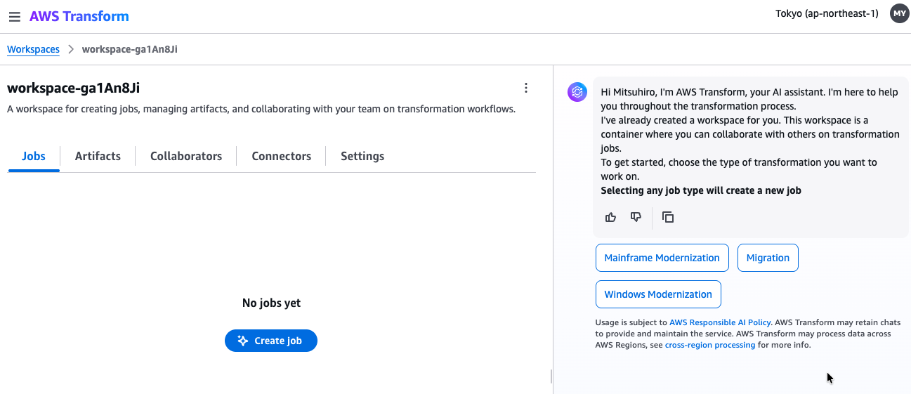 ワークスペースを開くと、ジョブ、アーティファクト、コネクターなどが見えます。