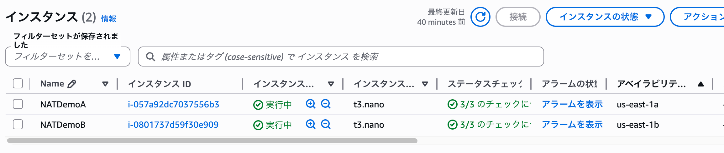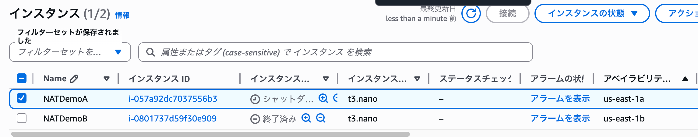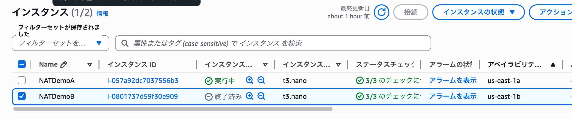 EC2インスタンスを起動した2つのAZでNATゲートウェイのプライベートIPアドレスが関連付けられています。
